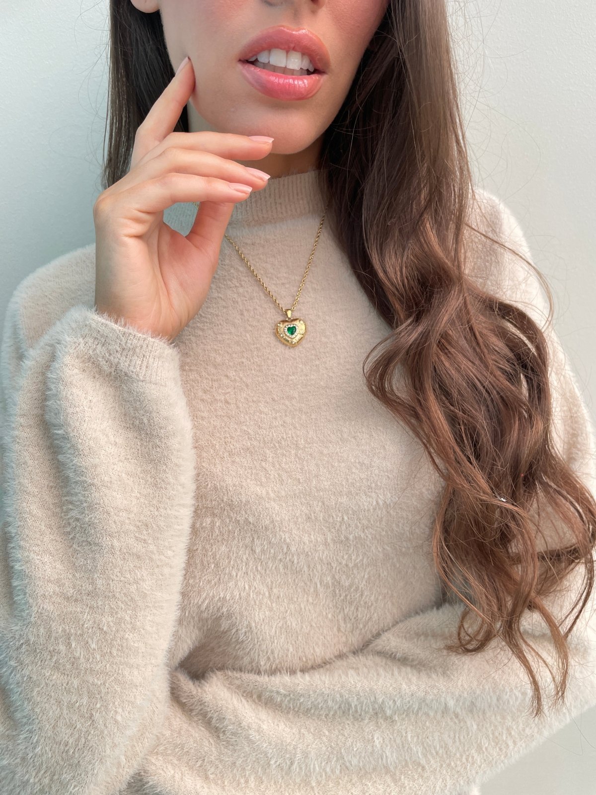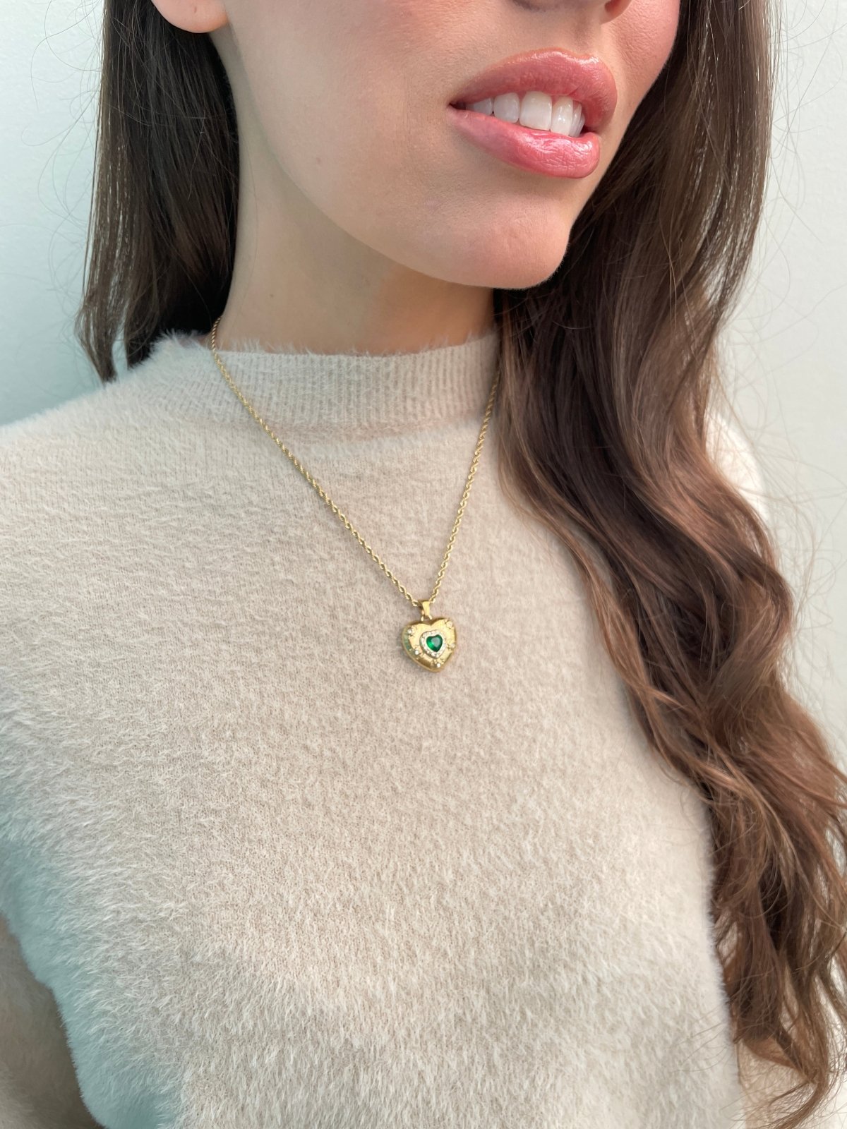 Envious heart necklace - green/18k gold plated